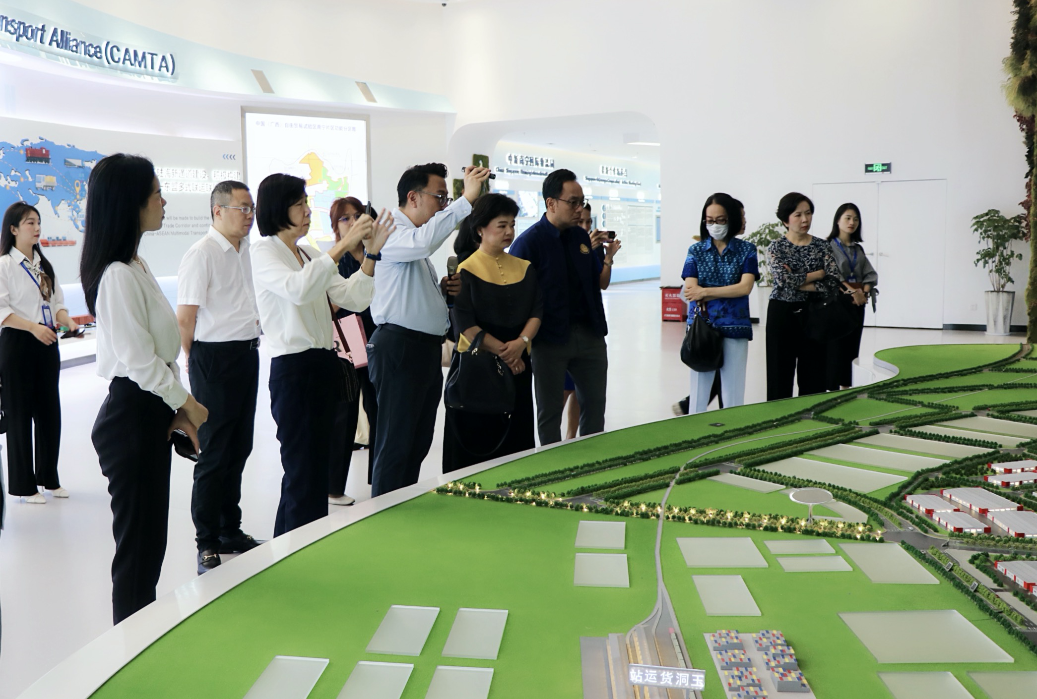 在介紹到位于園區(qū)內(nèi)的匯聚中心項(xiàng)目時(shí),巡視組興致濃厚,他們認(rèn)為,匯聚中心是中新物流園中最亮眼的角色,同時(shí)也是園區(qū)有別于其他物流園的一大特色,將在促進(jìn)中國(guó)與東盟、尤其是在與泰國(guó)的經(jīng)貿(mào)往來(lái)中發(fā)揮重大作用。