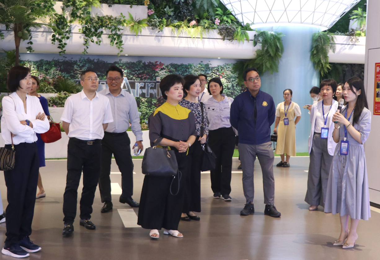婉娜蓬·戈杜塔等泰國(guó)商業(yè)部巡視員、中國(guó)—東盟特色商品匯聚中心副總經(jīng)理盧春梅等陪同考察。