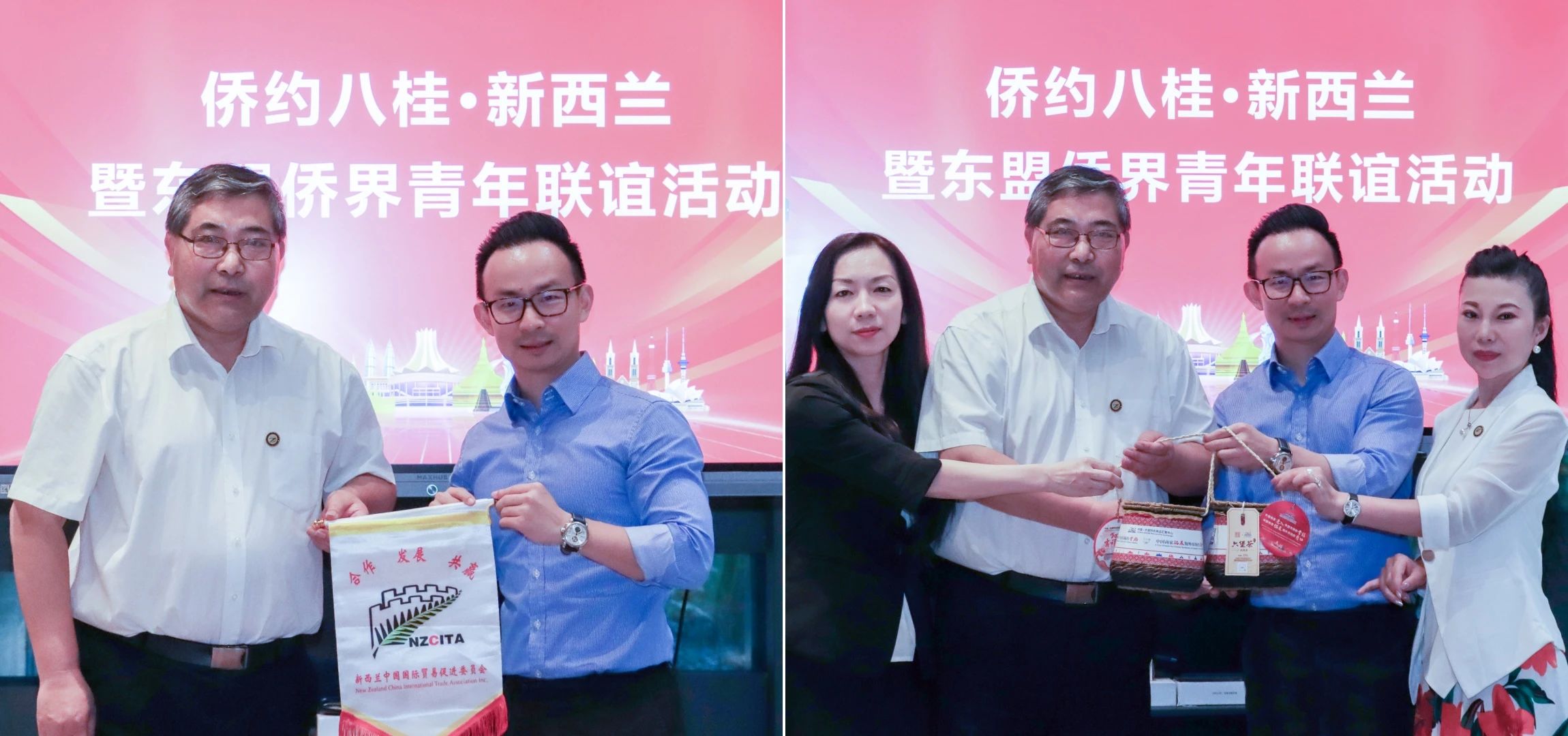 2024年5月15日,在廣西壯族自治區(qū)僑聯(lián)黨組成員、副主席秦偉鵬的陪同下,新西蘭中國國際貿(mào)易促進委員會和志耘會長率經(jīng)貿(mào)文化投資代表團到中國—東盟特色商品匯聚中心(簡稱“匯聚中心”)參觀考察并進行座談交流。中國—東盟特色商品匯聚中心總經(jīng)理林哲宇熱情接待了代表團一行。