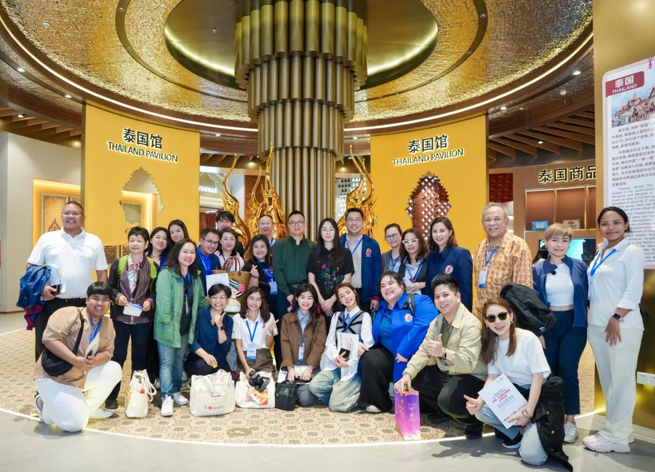泰國(guó)媒體代表團(tuán)在泰國(guó)館合影留念