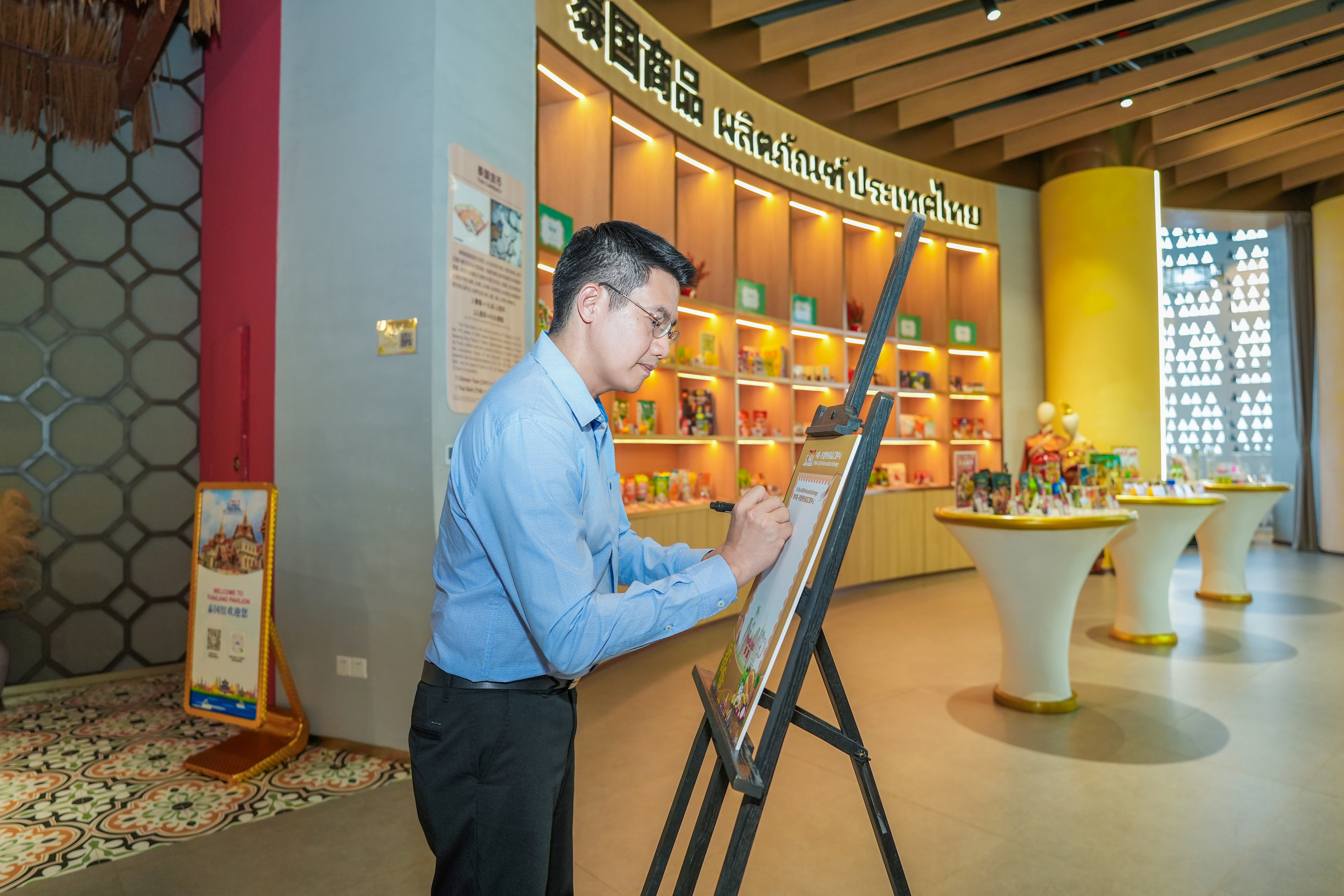 努帕拉猜主任在泰國館寫下了對匯聚中心的美好寄語,并祝愿項目繁榮昌盛,越來越好。