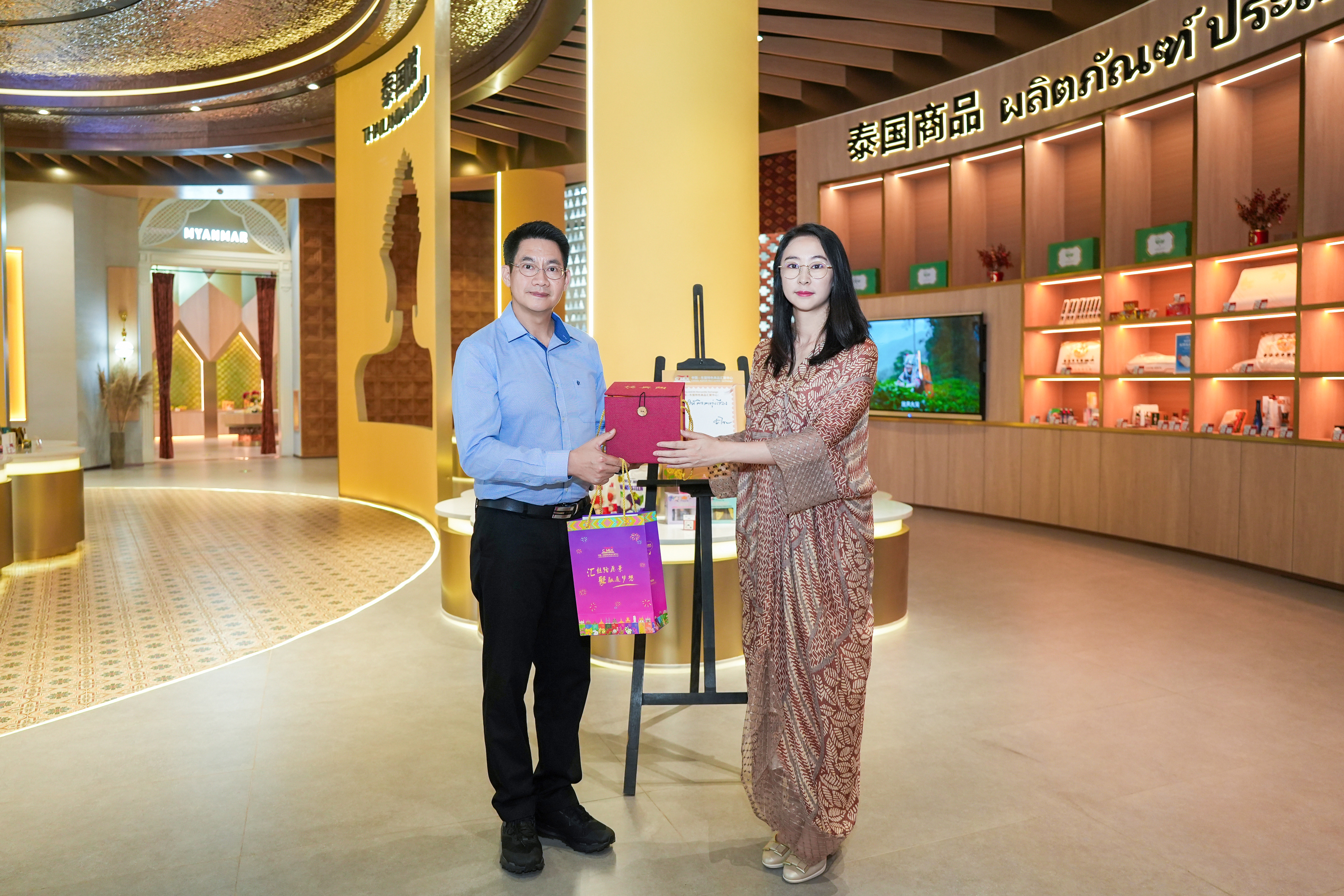 步入泰國館,館內(nèi)琳瑯滿目的商品及當?shù)馗鞣N特色文化元素的創(chuàng)意呈現(xiàn),讓代表團產(chǎn)生了濃厚的興趣。在了解到匯聚中心為入駐商家提供一站式增值服務,特別是聽取了各館長對商品專業(yè)的介紹后,代表團對平臺的發(fā)展更添信心。“這是一個真正為商家服務并獨具特色的商貿(mào)平臺,很開心能在這里看到很多泰北特色商品,泰北的清邁、清萊和蘭納地區(qū)擁有非常豐富的手工藝品,如咖啡、陶瓷、木雕、雨傘、燈籠等,希望能在匯聚中心設立泰北特色商品專區(qū),借助匯聚中心這一平臺幫助當?shù)靥厣唐窋U大品牌影響力,拓寬國際市場”。代表團興致高漲,隨即就商品入駐流程與后續(xù)營銷推廣細節(jié),與匯聚中心團隊展開積極溝通。