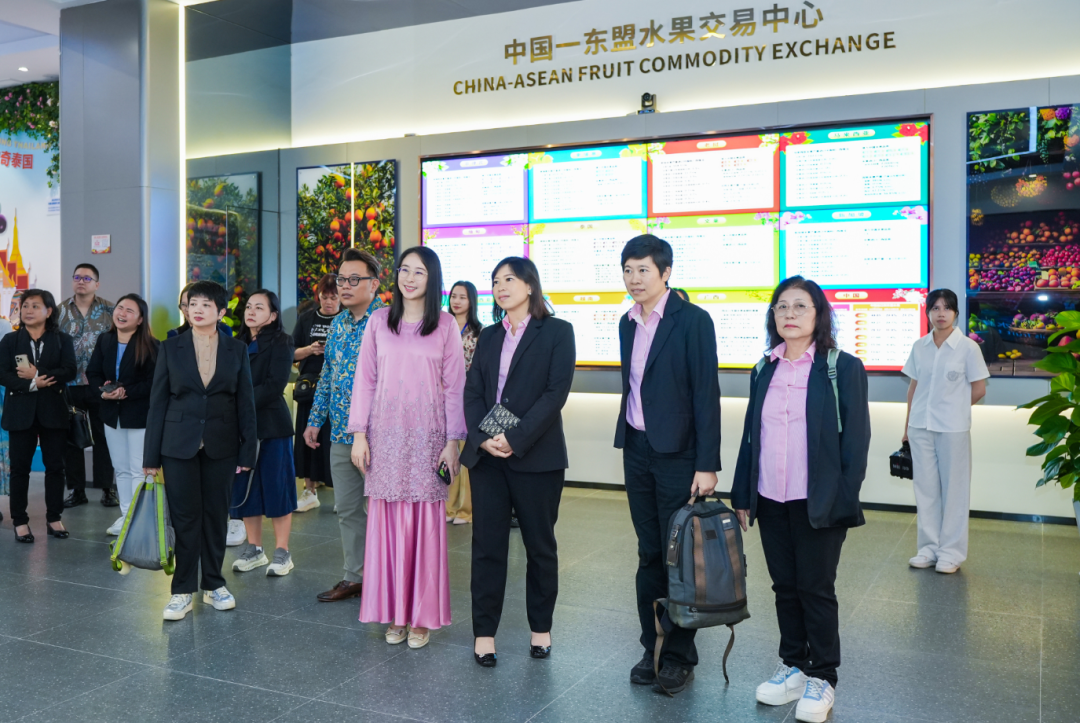 隨后,代表團走進水果交易中心展廳,詳細了解廣西本地水果產(chǎn)業(yè)特點及中國與東盟水果貿易的發(fā)展現(xiàn)狀與成果。代表團提到,馬來西亞作為東南亞重要的水果進出口國,果品資源豐富,尤其以聞名世界的貓山王榴蓮為代表,且馬來西亞大會堂總會聚集了大量果商,她們期待未來雙方能進一步拓展溝通與合作渠道,并對與水果交易中心的合作充滿信心。