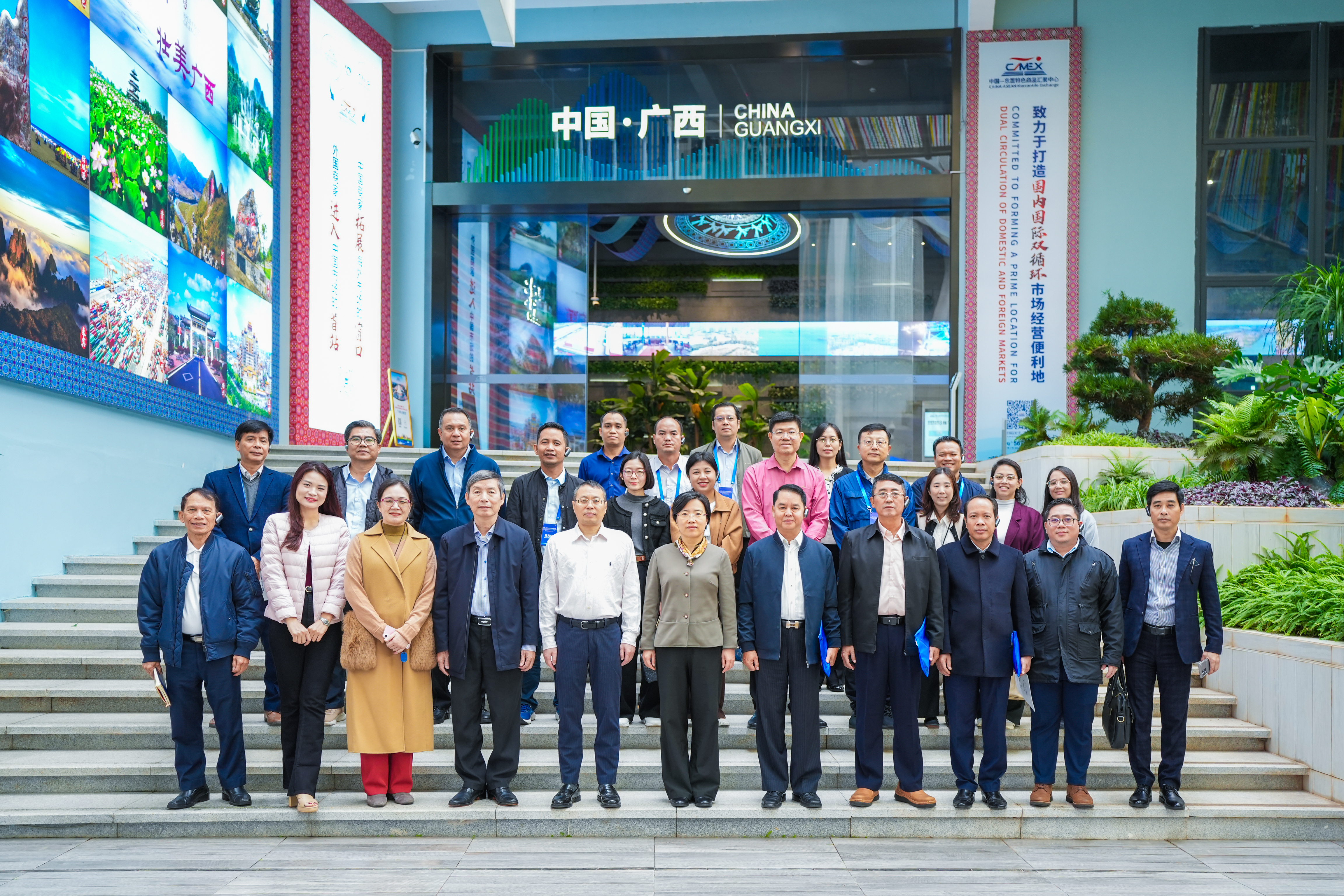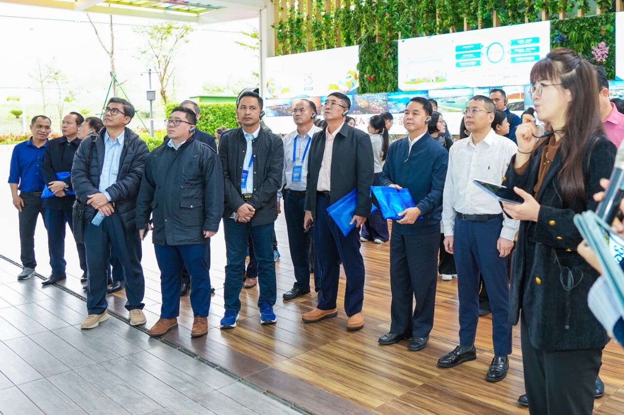 2025年11月3日,以“國家治理與亞洲文明”為主題的中國—東盟行政院校和智庫研討會在南寧舉行。會后,由東盟國家的政府官員、以及行政院校、智庫和研究機構(gòu)代表組成的考察團,專程到訪中國—東盟特色商品匯聚中心(簡稱“匯聚中心”),實地感受項目在深化中國與東盟經(jīng)貿(mào)合作、促進人文交流中所發(fā)揮的積極作用。廣西新中產(chǎn)業(yè)投資有限公司副總經(jīng)理商紅熱情接待了考察團一行。