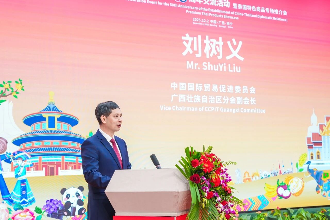 劉樹義副會長在致辭中表示, 廣西始終把深化桂泰合作作為服務(wù)國家戰(zhàn)略的重要抓手,穩(wěn)步把“中泰一家親”的理念轉(zhuǎn)化為實實在在的合作成果。他希望以中泰建交五十周年為契機,深挖中國—東盟自貿(mào)區(qū)3.0版和RCEP的政策紅利,以本次活動為起點,以“特色商品”為紐帶,推動更多泰國水果、香米、手工藝品等特色商品通過廣西的跨境電商平臺走進中國千家萬戶,同時也鼓勵中國的機械設(shè)備、電子產(chǎn)品、輕工產(chǎn)品借助泰國市場輻射整個東盟。在此基礎(chǔ)上,桂泰合作必將邁上新的高度。