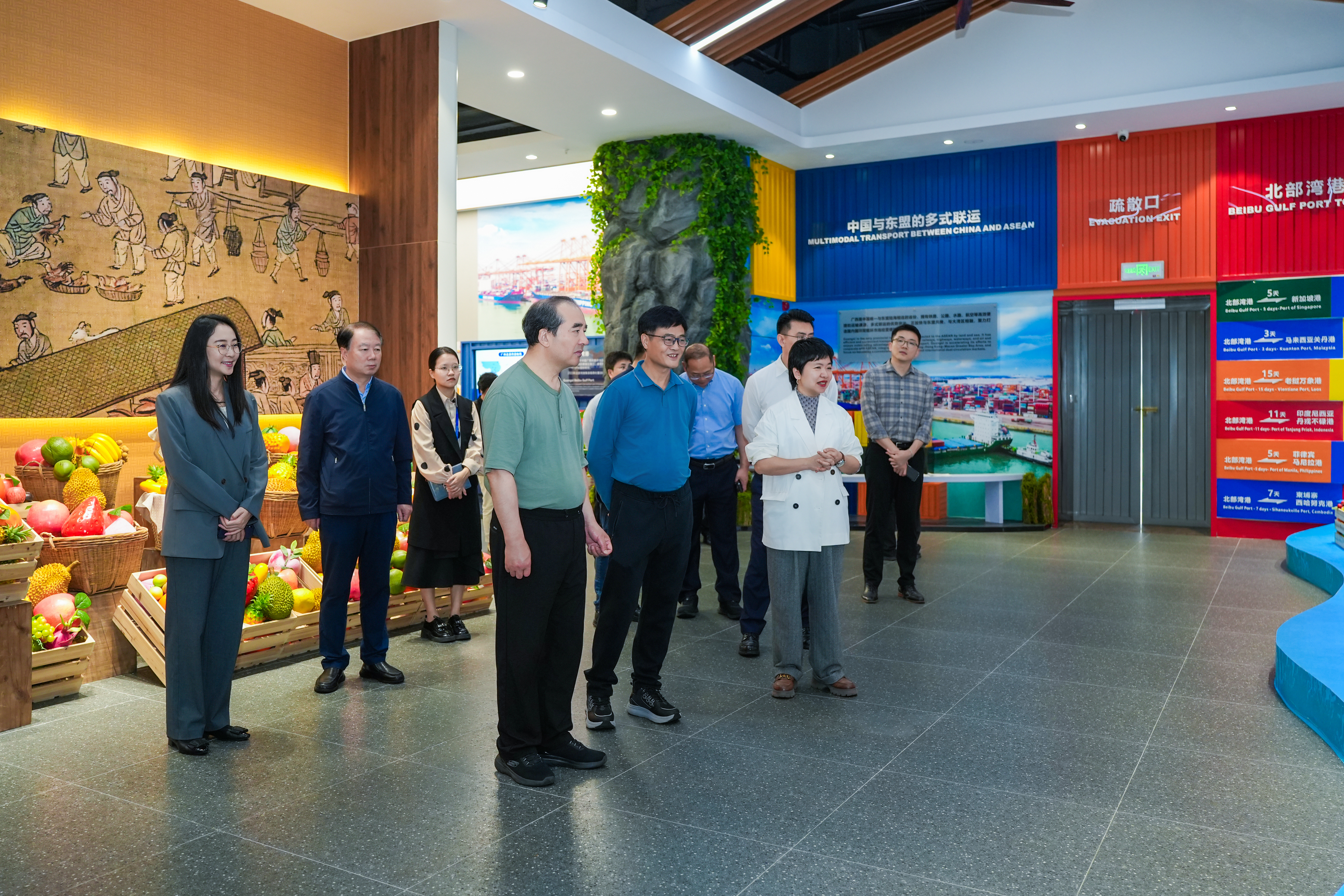 交流中,匯聚中心副總經(jīng)理盧春梅重點(diǎn)介紹了匯聚中心平臺(tái)優(yōu)勢(shì)、運(yùn)營(yíng)成效與合作基礎(chǔ)。她向調(diào)研組介紹道,匯聚中心積極整合各方優(yōu)質(zhì)資源,通過舉辦更多東盟特色的主題活動(dòng),以文化匯商家,以商貿(mào)聚合作,以最佳配套服務(wù)作支撐,助力中國(guó)與東盟國(guó)家經(jīng)貿(mào)合作與人文交流,致力成為外國(guó)商家進(jìn)入中國(guó)市場(chǎng)的首站,中國(guó)商家拓展海外市場(chǎng)的重要窗口!加之中新物流園和水果交易中心,三者形成優(yōu)勢(shì)疊加、協(xié)調(diào)發(fā)力的良好態(tài)勢(shì),相信未來能進(jìn)一步為中國(guó)與東盟深化全方位合作注入新動(dòng)能。