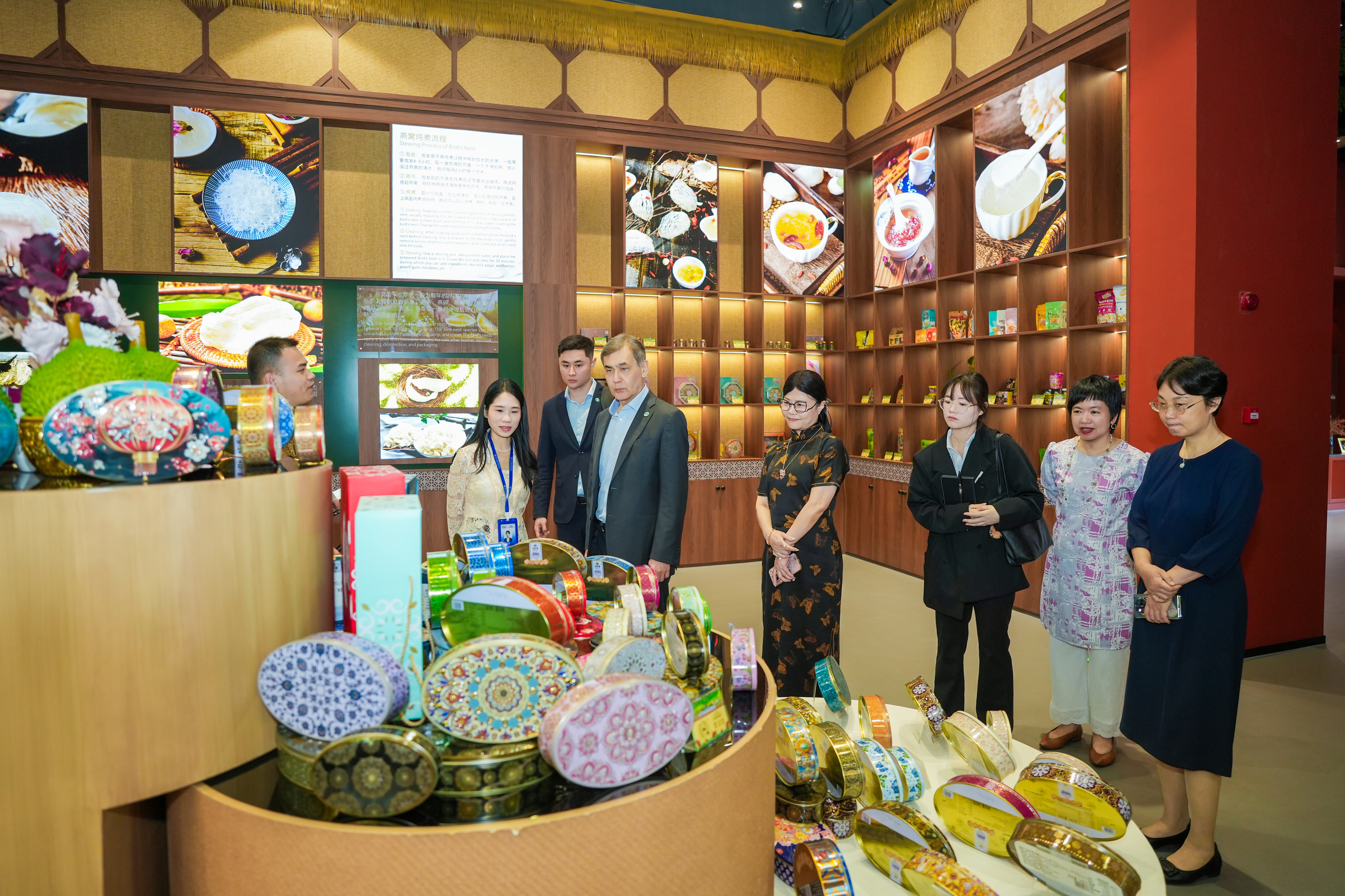 參觀過程中,努爾蘭·葉爾梅克巴耶夫秘書長就商家的入駐流程、產(chǎn)品運營及銷售等業(yè)務環(huán)節(jié)進行了深入交流。當了解到匯聚中心為入駐商家提供免費的線上線下展示空間,且各館均配有專業(yè)講解員負責產(chǎn)品管理與推廣,常態(tài)化舉辦經(jīng)貿(mào)與人文交流活動助力合作成交后,努爾蘭·葉爾梅克巴耶夫秘書長給予了高度肯定。