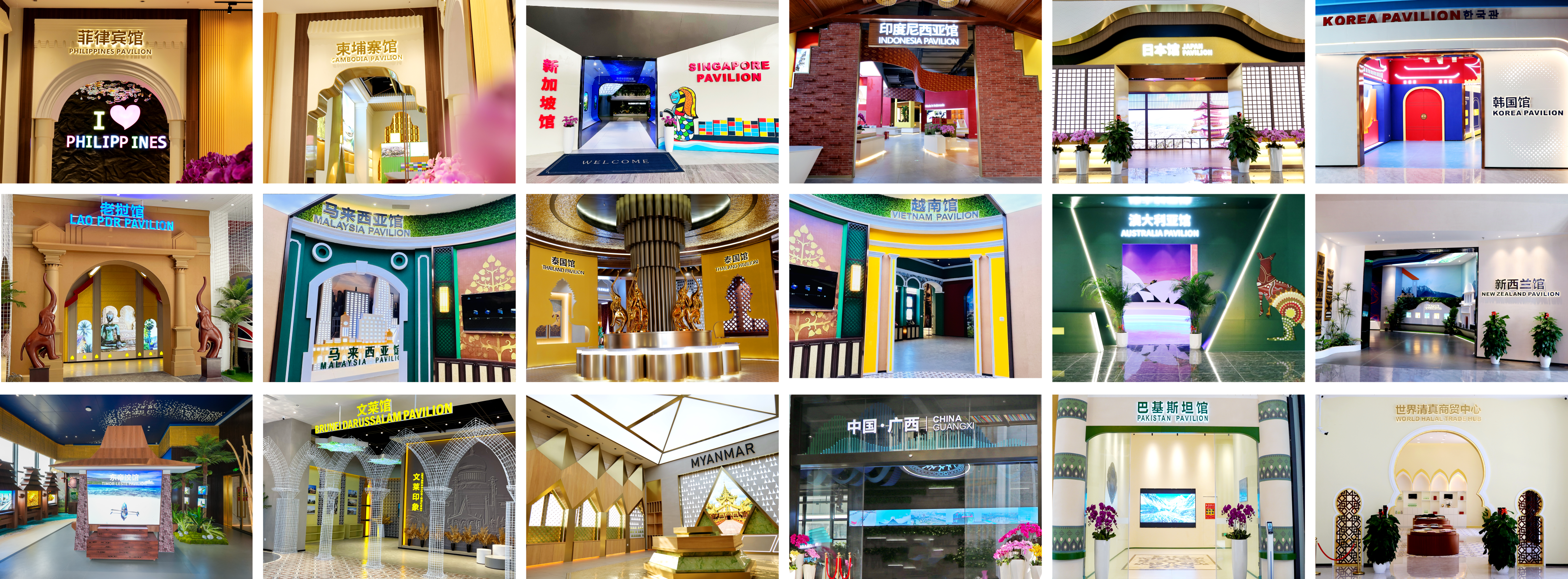 匯聚中心共建設(shè)有18個(gè)文化主題館。其中11個(gè)東盟國家主題館(文萊館、柬埔寨館、印度尼西亞館、老撾館、馬來西亞館、緬甸館、菲律賓館、新加坡館、泰國館、東帝汶館、越南館),1個(gè)地方館(廣西館),1個(gè)特色館(世界清真商貿(mào)中心),“一帶一路”沿線首個(gè)國家主題館--巴基斯坦館以及RCEP其他區(qū)域國家主題館(日本館、韓國館、澳大利亞館、新西蘭館),通過提取各國特色建筑景觀和人文風(fēng)俗等經(jīng)典元素,以沉浸式的體驗(yàn)呈現(xiàn)各國特色商品,不僅促進(jìn)了國際經(jīng)貿(mào)合作與交流,還為國內(nèi)外客戶提供相應(yīng)的配套服務(wù),例如小語種翻譯、公司注冊、投融資服務(wù)、資源配對(duì)、人才培訓(xùn)、品牌運(yùn)營等 ,以此吸引更多的國內(nèi)外商家到廣西、或通過廣西進(jìn)入中國其他省份投資興業(yè);我們也希望通過所搭建的平臺(tái),幫助更多有意向到東盟乃至RCEP其他區(qū)域國家發(fā)展的商家提供省時(shí)省力省錢的一站式參與國際市場的發(fā)展機(jī)遇。